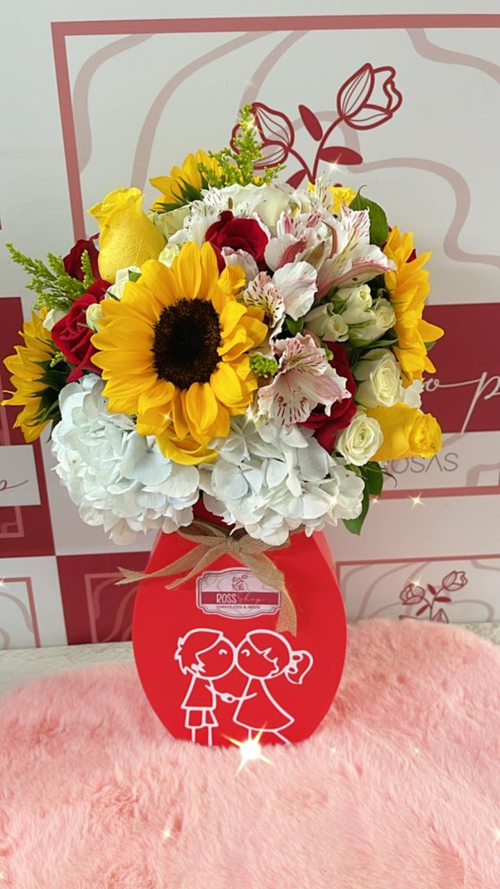 Caja personalizada con arreglo de flores premium.