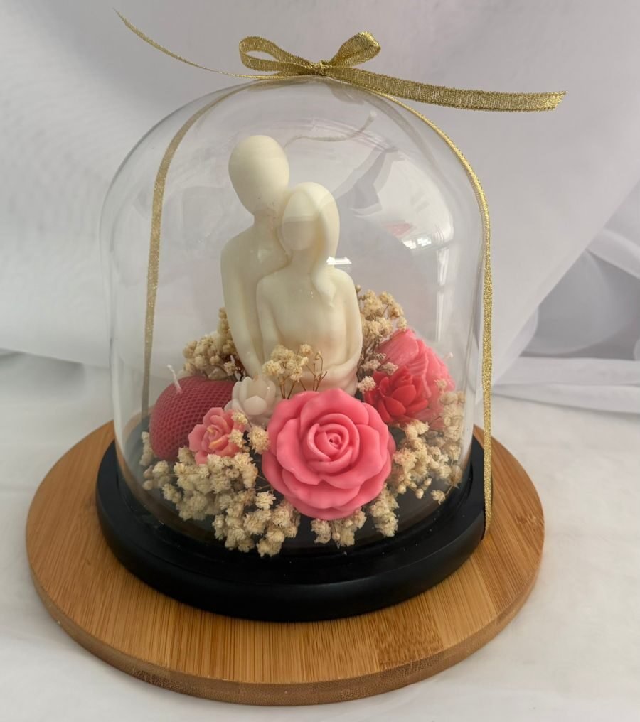 Vela de soya en forma de corazones pintada a mano