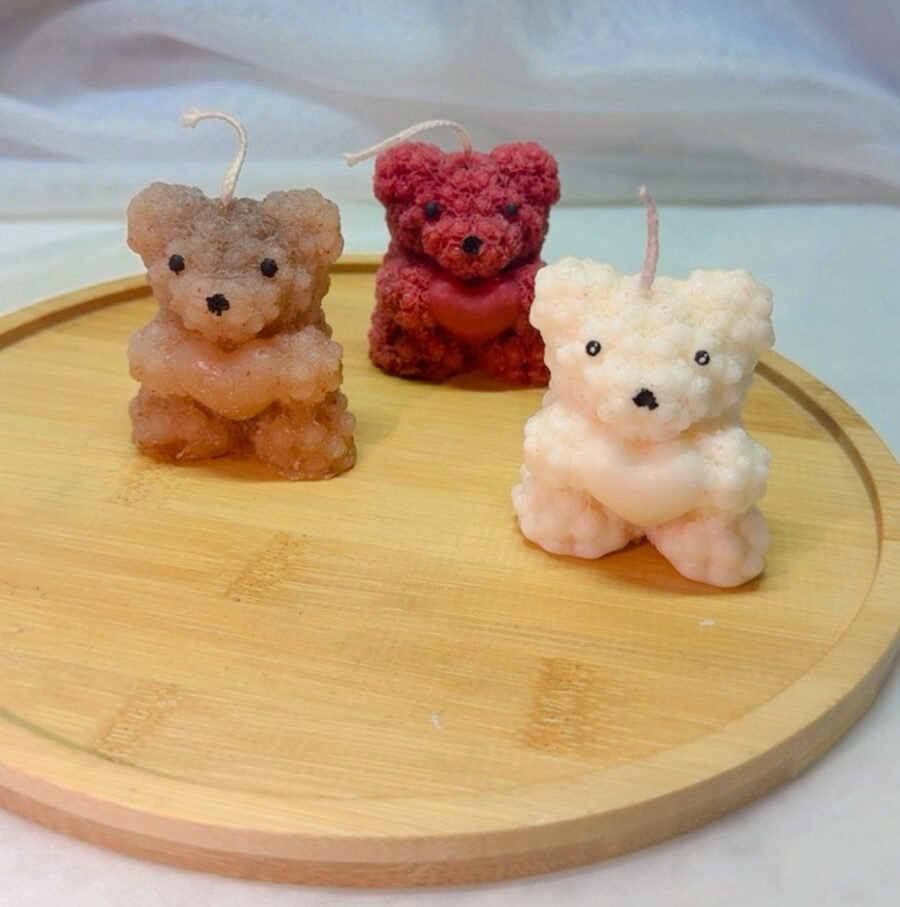 Vela de soya en forma de osito (colores a elección: blanco, rosa, rosado, café)